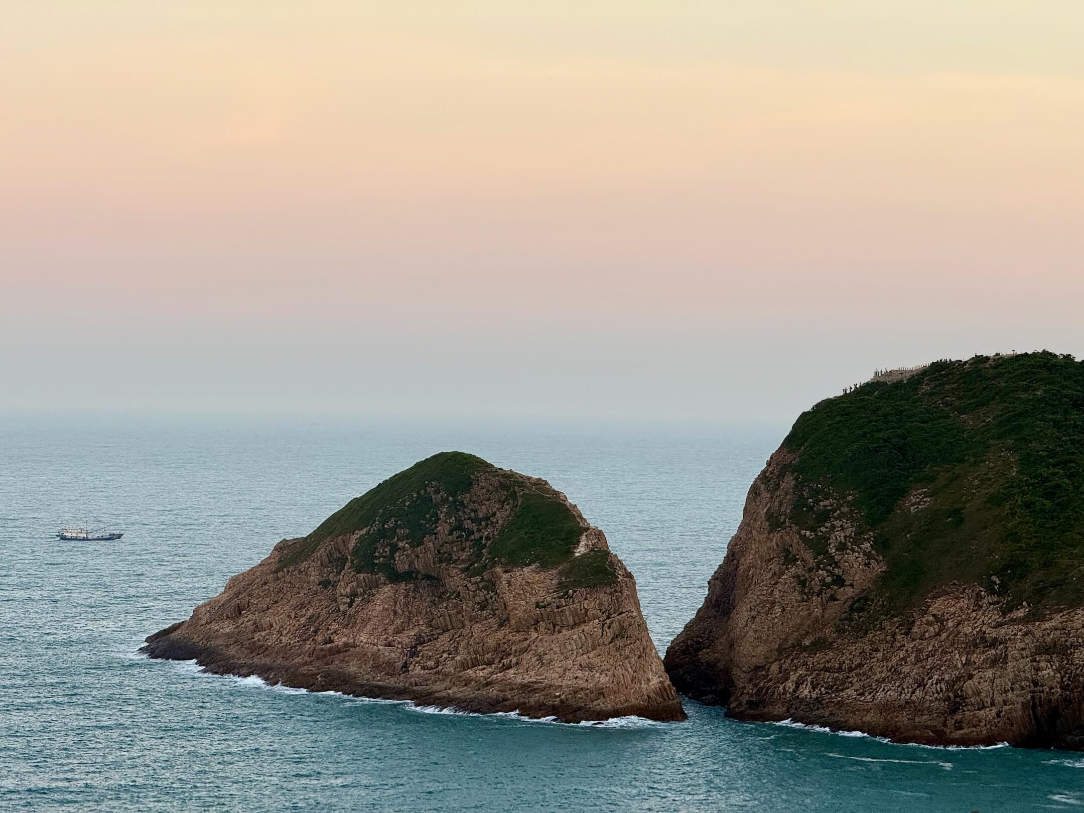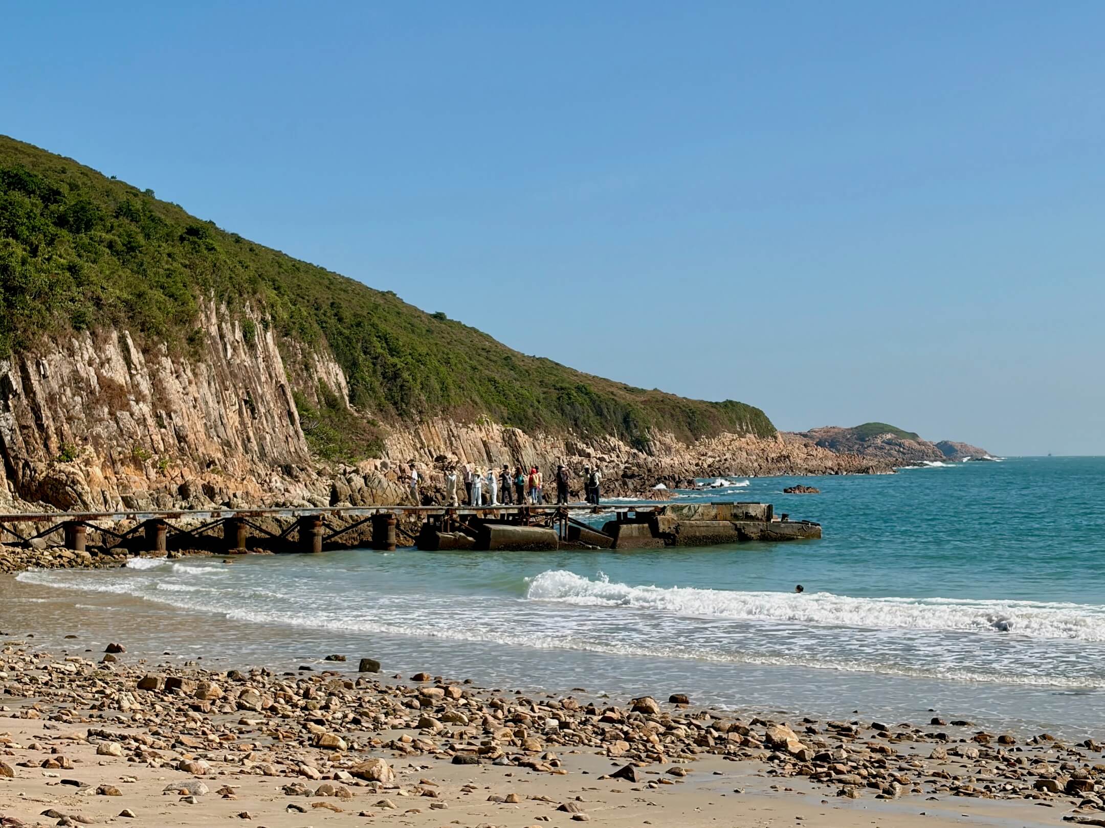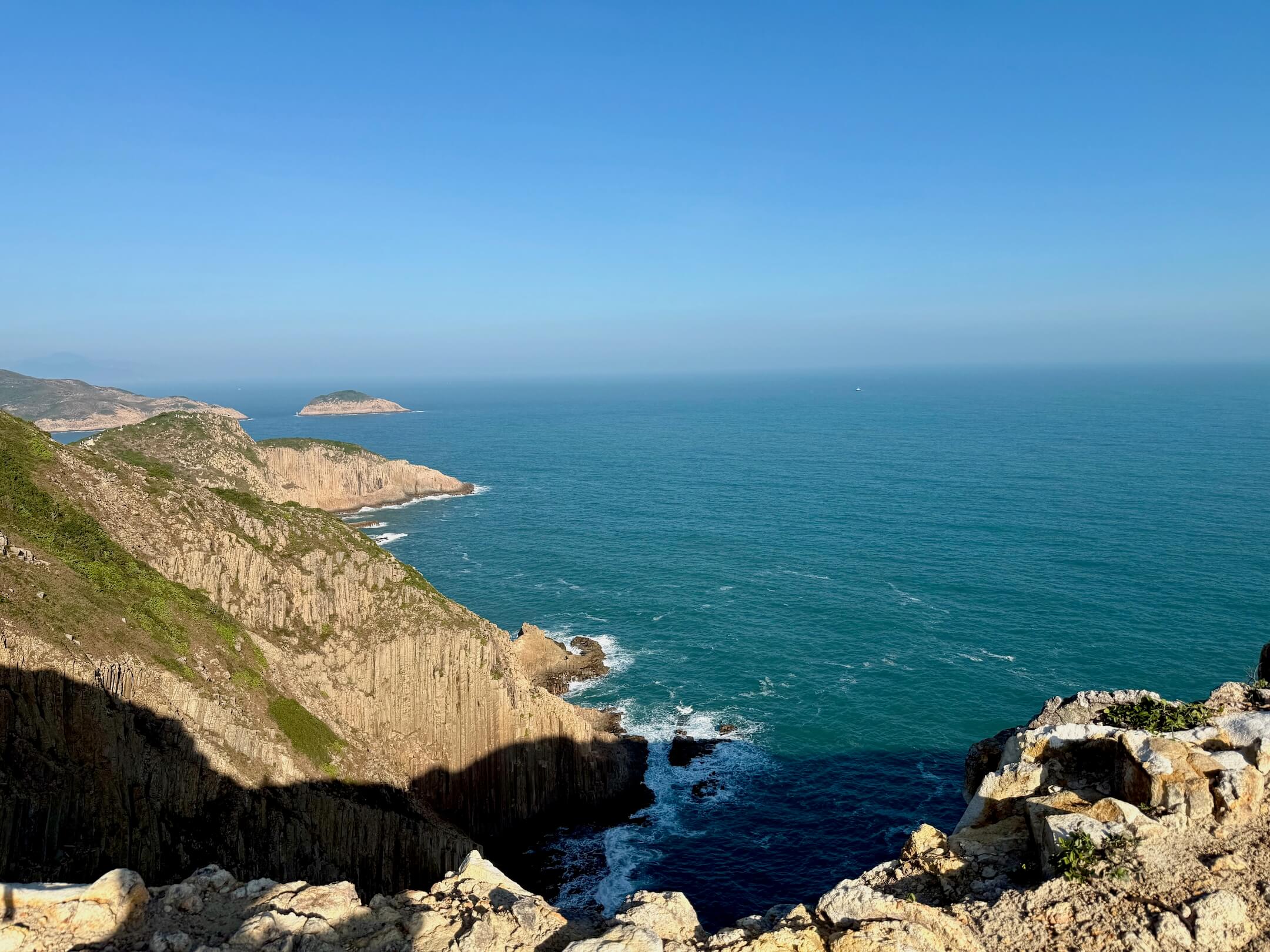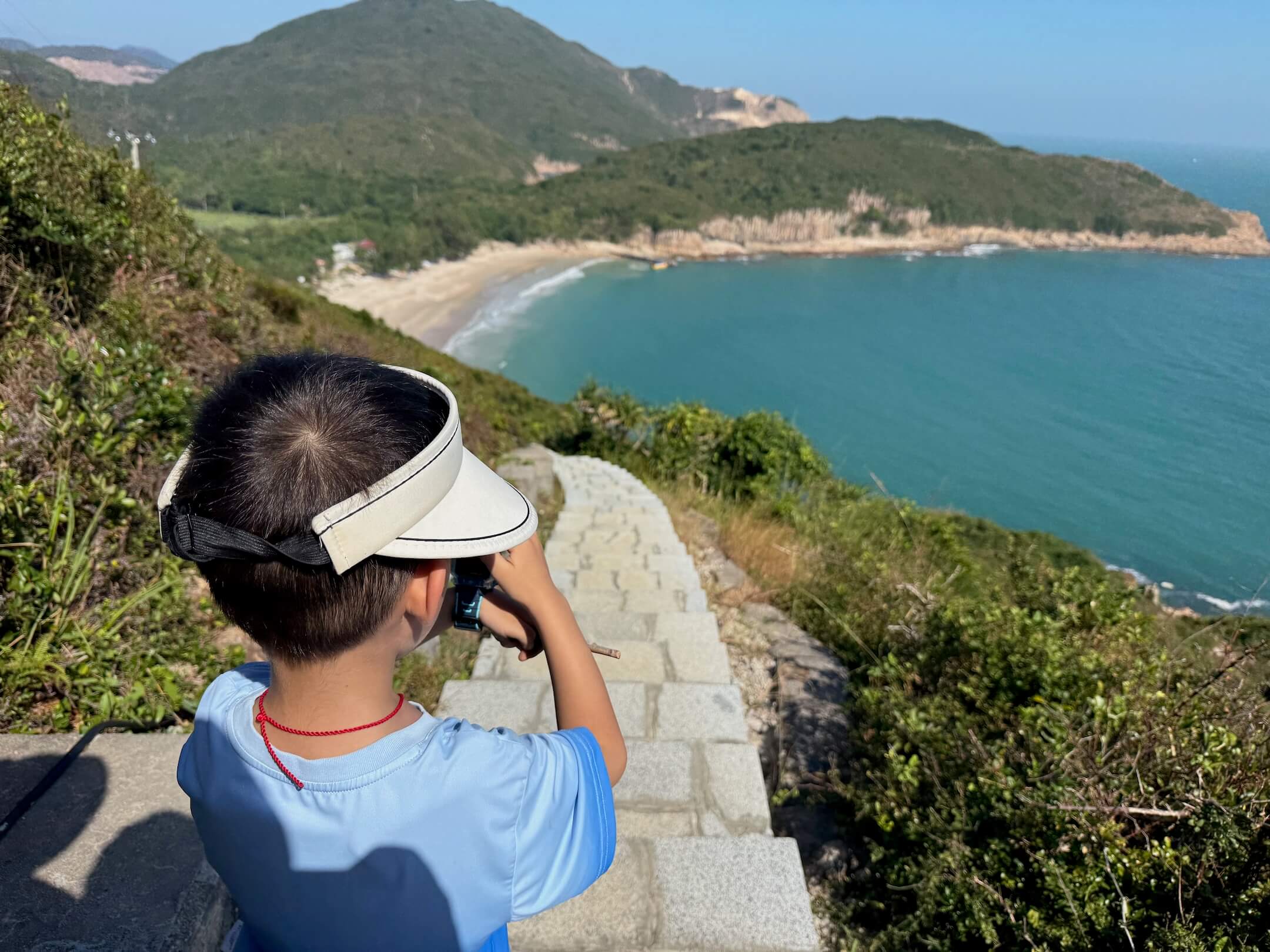 后来听说是领队看我们体力不错,后半程走了条比较难的路线。本来可以在粮船湾观景台处继续沿着公路走的,但我们在此处往下走了林间路线,风景自然是更好一些。